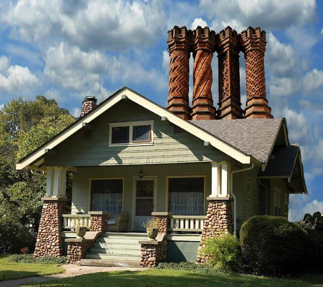 Tudor chimneys on an Arts & Crafts bungalow…. I’m not sure I could convince my husband to give it a try.