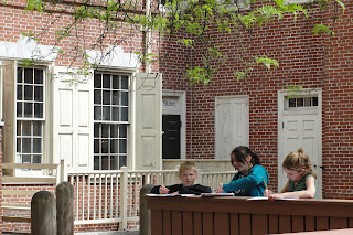 I noticed the clock below the clock tower and just couldn’t help but wonder….. why? Why does a clock tower (with a clock on all four sides) require an additional clock below it? Nobody knew. Google couldn’t tell me either. Here are the kids’ theories: Did our founders have a secret obsession with time? Or maybe this was the early version of World Time Zone Clock Walls? Perhaps the extra clock showed the time in the Mother Country? Maybe the Founding Fathers just thought it would be pretty?