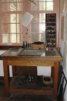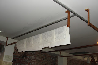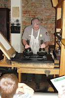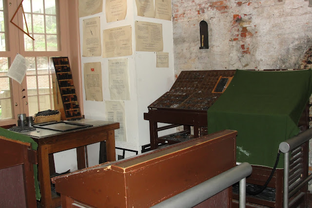 After being printed, the papers were hung to dry in railings around the ceiling of the print shop. The printer noted that there would have usually been several people running a shop of this size – probably one or two dedicated to setting the plates, a few who ran the actual printing in an assembly-line fashion, one who dried and pressed the papers – and they would have been capable of printing several papers a minute.