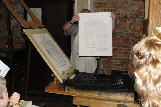 And this was the final result – our Declaration of Independence. Did you know we had a few different versions of our Declaration of Independence? (What he’s holding in the picture is the Declaration of Independence as it was printed and distributed in July of 1776. It was slightly different than what was printed and signed later that year. Before we left, we were able to purchase that version and the version that was signed from the printer that had been printed right there in the re-created shop. Now how cool is that?)