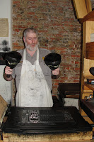 Then the ink was applied to the plate face with the use of leather tampers repeatedly pounded over the face of the plate to make sure ink was adequately and evenly applied to the entire printing surface.