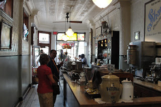 When we just couldn’t go anymore, we headed towards the Franklin Fountain. Our family has a tradition of hunting down local creameries every time we go anywhere (even if it is just ten miles down the road), and the story behind Franklin Fountain fascinated us. (And when the kids heard Man vs. Food visited the Franklin Fountain, it was a done deal. Click here to watch the short video about his visit.) The creamery itself fascinated us as well, particularly the cash register with Franklin quotes and the pulley system ceiling fans.