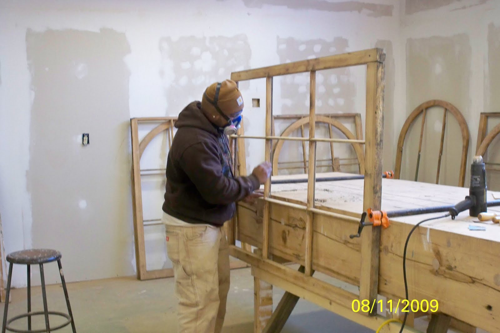 Work on the Columbia Market commenced on October 12, 2009 with a 120 day project schedule, since this is a “working” market with stand holders open for business on Thursdays and Fridays, work is to be done in 10 hour days, Monday through Wednesday with Saturday and Sunday optional work days. Historic Restorations is restoring the fourteen original windows. On site the entire windows are removed and the openings are secured with plywood, in the shop the old glass is gently removed, cleaned and labeled for re-installation at the end of the process. The wood mullions, rails and stiles are stripped of their old paint and sanded in preparation for a fresh coat of paint. Any rot or damaged wood is repaired or replaced, if necessary. After one coat of primer the windows are reunited with their original glass and any extra glass that may have been purchased to replace broken panes . Meanwhile, on site in Columbia, the exterior and interior window trim is being prepared to receive the refurbished windows, wood filler, sanding and missing pieces are used to create an exceptionable frame and architectural detail for form and function. Today Historic Restorations is about half way through our portion of this project, we are thrilled with the transformation and honored to be a part of this historic buildings story. If you ever get to this little river town, on a Thursday or Friday, stop by the Market, the oldest in the United States or have a virtual visit, www.columbiahistoricmarkethouse.com