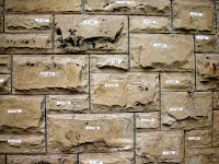 The house must be rebuilt with each stone in the same position, so each stone is numbered. Note the tags on each stone. The stones are identified by an alpha designating the location of the wall and a numeric designating the location of the wall and a numeric indicating its position. Every stone in the house is numbered.