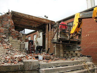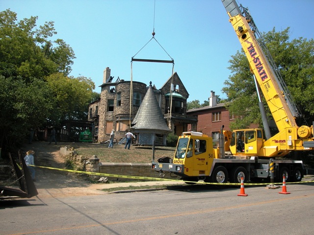 Once the roof was gone, it was time to remove the peak of the turret. The turret weighed 7,300 pounds.