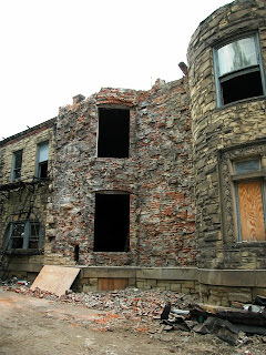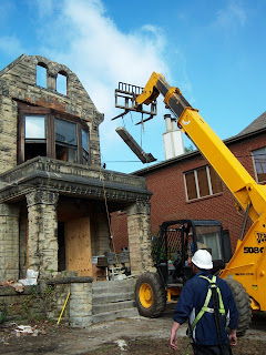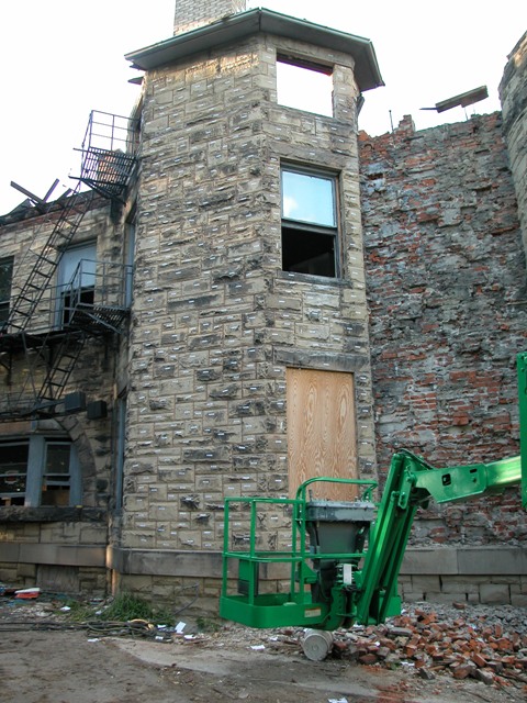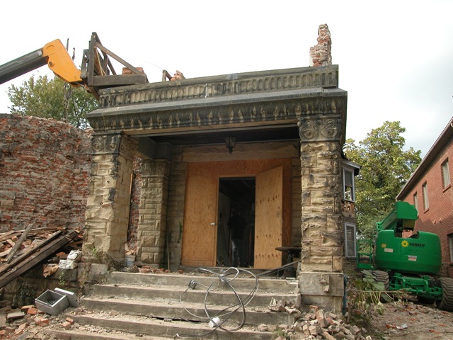 When originally built, the stone facade was layered over and interleaved with three courses of brick and mortar which constituted the main structure of the house walls. In addition to the surface stones, there were many monolithic stone components that were carefully removed, some weighing over 4,000 pounds.